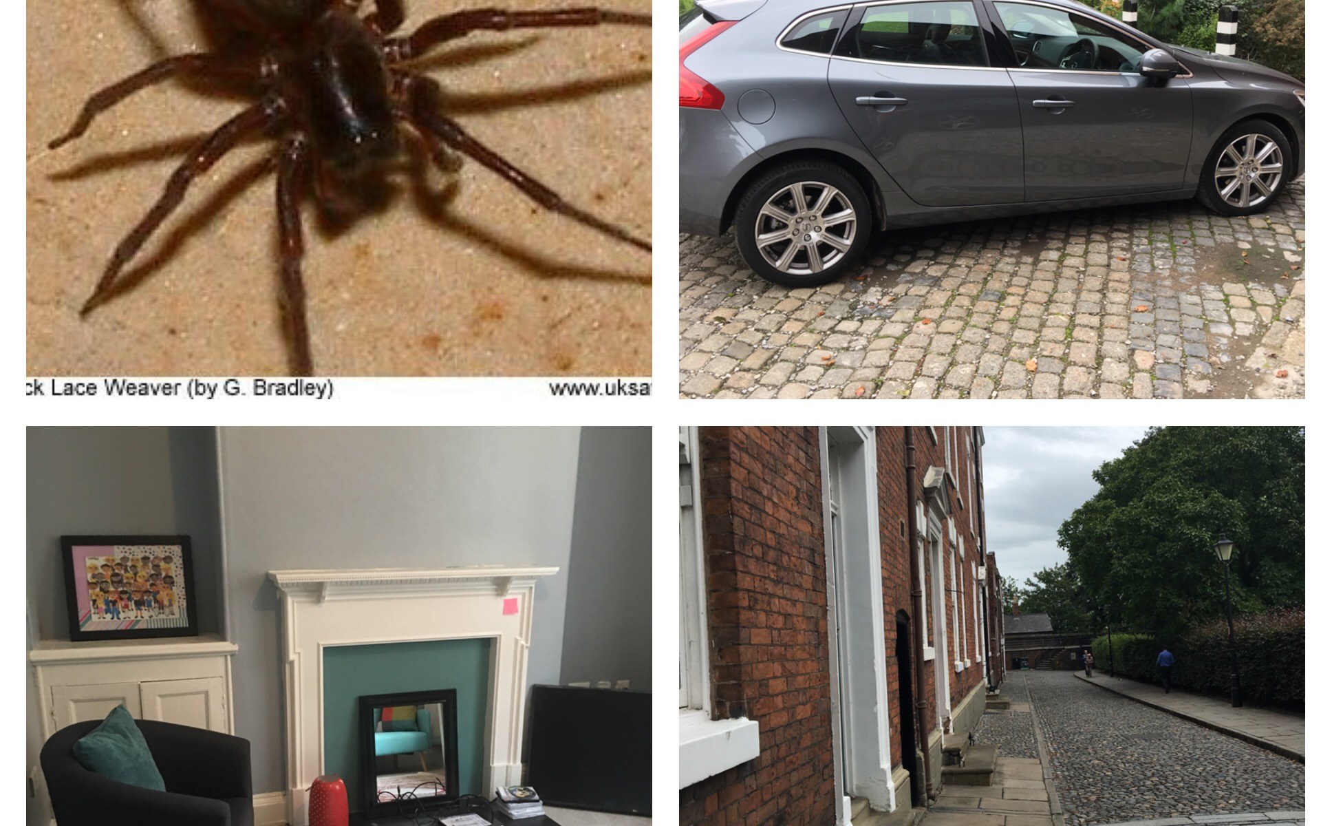 Before bed, Steve went into a story, I killed a spider by you the other night. It was huge– I mean it was huge. You know Lawrence’s tarantula….okay, it wasn’t a tarantula, but I think as big. Okay, it was a tarantula. A UK tarantula, a domestic tarantula. He showed me with his hand, he had to use both hands to show me the size of the spider with legs. Wow that is a big fish story! It crawled into my work shirt pile (right by my side of our bed in our tiny-tiny room). I had to dig thru all those clothes to find him. He tried to crawl away and I got him!