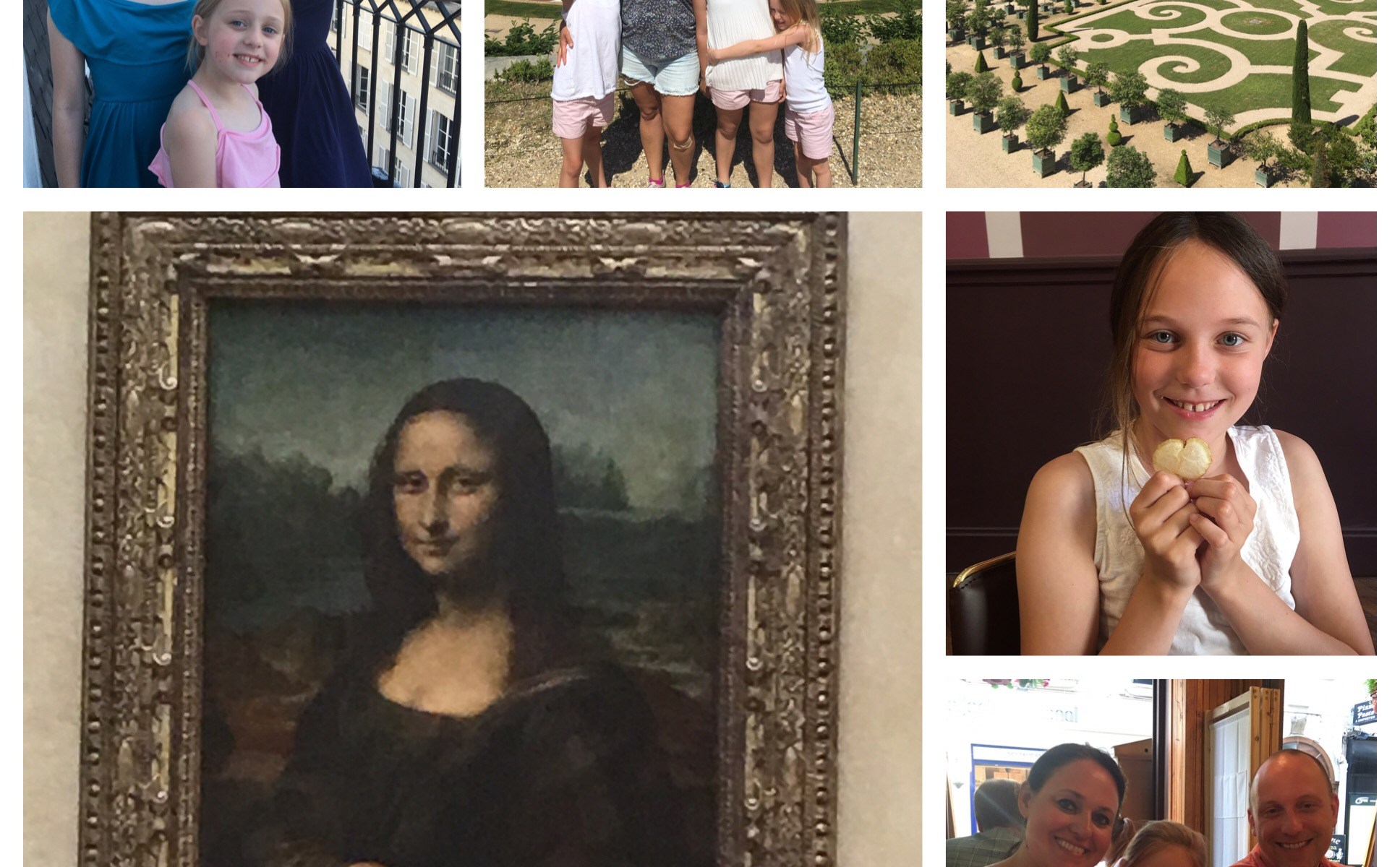 Our family was sitting in a time-out bench against a wall in the Louvre in the ancient Egypt art exhibit. It’s exhausting to think how long it would take to properly go through that art museum. Caroline, Helen and Kate were shooting with excitement to see the “Mona Lisa.” We ran upstairs. We followed the signs. We followed the crowds. And there she was framed on a wall, encased in glass, two security guards protecting her. I thought she was beautiful and worth all the hype. And I could not believe I was standing in a room with the original “Mona Lisa.” I’m still thinking about the history of Leonardo da Vinci and the story of that painting.